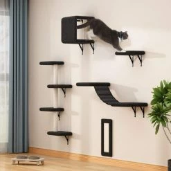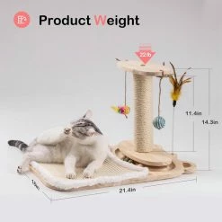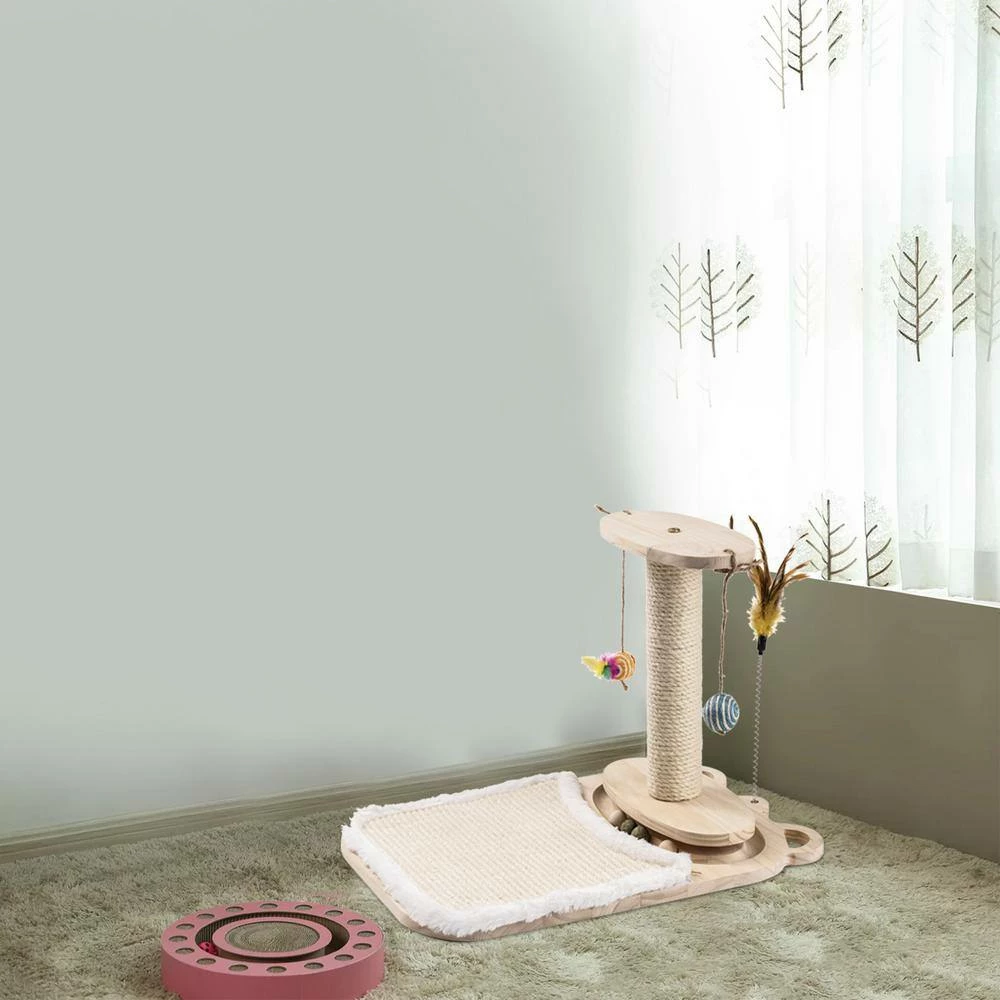 21.4 in. x 14.3 in. Wood Cat Ball Toy with Cat Scratching Post and 5 Interactive Balls by Kahomvis