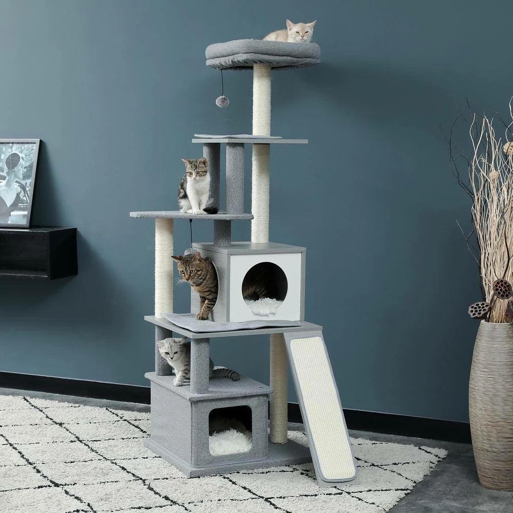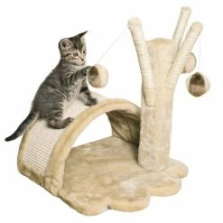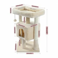 28.4 in. H Beige Wooden Cat Tree, Polyester Plush Cat Tower with Scratching Sisal Posts by Unbranded