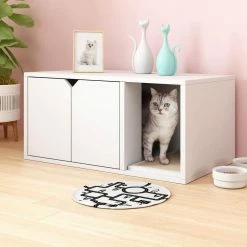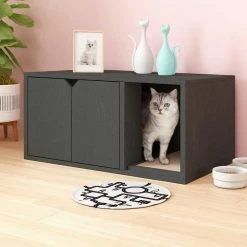 Light Grey 30in. x 21 in. x 20 in. Wooden Cat litter Box Enclosure, Hidden Cat Washroom by PawHut