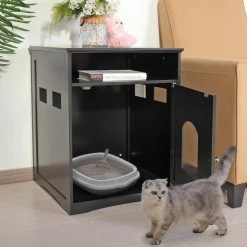 Cat Hidden Litter Box Furniture Enclosure with Tabletop, Black by COZIWOW