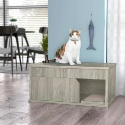 Eco zBoard 36.6 in. W x 16.9 in. H Lonfon Grey Cat Litter Box Enclosure with 1-Door by Way Basics