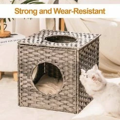 Rattan Cat Litter Cat Bed Cat House in Yellowish Brown by Foobrues