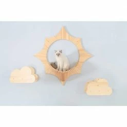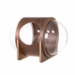 MYZOO Small Spaceship Gamma Wall Mounted Walnut Cat Bed Open on the Right by AndMakers