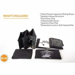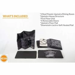 Outdoor Heated 2-Story Kitty House with Dining Room Gray Leaf Print Medium by K and H Pet Products