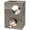 This sturdy wooden cat house protects your furry friend from some adverse weather conditions and provides a great place for your cat to relax. With a solid wooden frame, the outdoor cage is strong and durable. The green weather-resistant fabric on the roof keeps rain away. The ramp will be perfect for your cat to stretch herself. The wooden cage makes a perfect hideaway for your feline friend as well as adding a touch of rustic charm to your outdoor space. This cat house is easy to assemble.