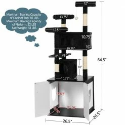 - Sturdy and secure material: mainly made of high-grade MDF and thick particle board, this cat furniture is quite strong, plus, the cabinet surface is sprayed with odor-free paint to ensure safe use the platform loads up to 22 lbs. and the cabinet top up to 66 lbs.