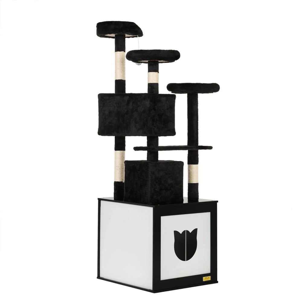 - Stable and easy to clean: supported by a large cabinet at the bottom for excellent stability, plus, 2 cabinet doors help you easily clean the cat litter inside, the side cat head-shaped holes for easy access and the plush fabric for the cat tree is soft and comfortable