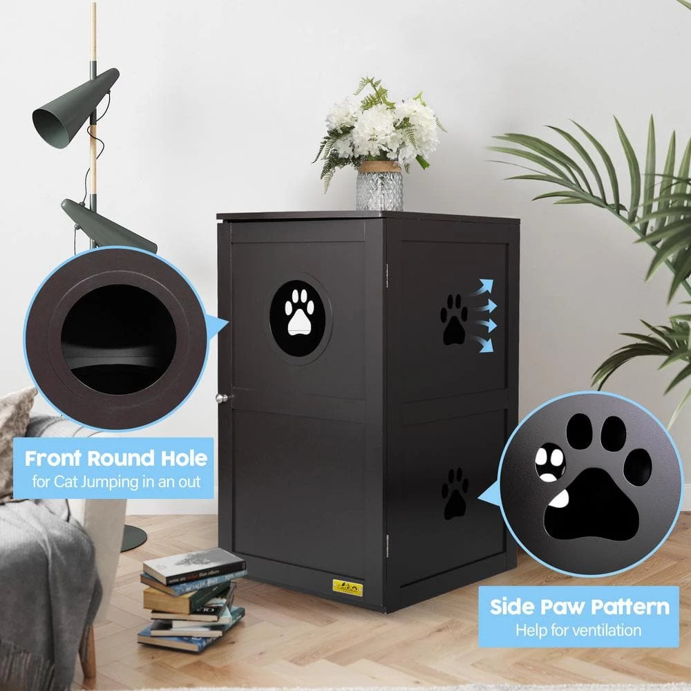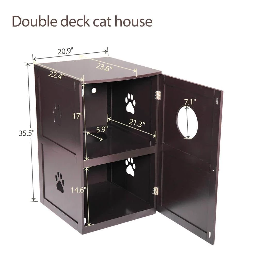 - Exclusive washroom house for cats: this practical 2-story cat washroom house (20.9 in. L x 23.6 in. W x 35.5 in. H) with a smooth top and cut-out cat claw patterns combines the functions of a cat litter box enclosure and a side table, helping hide messes while adding style to your bedroom, bathroom and living room