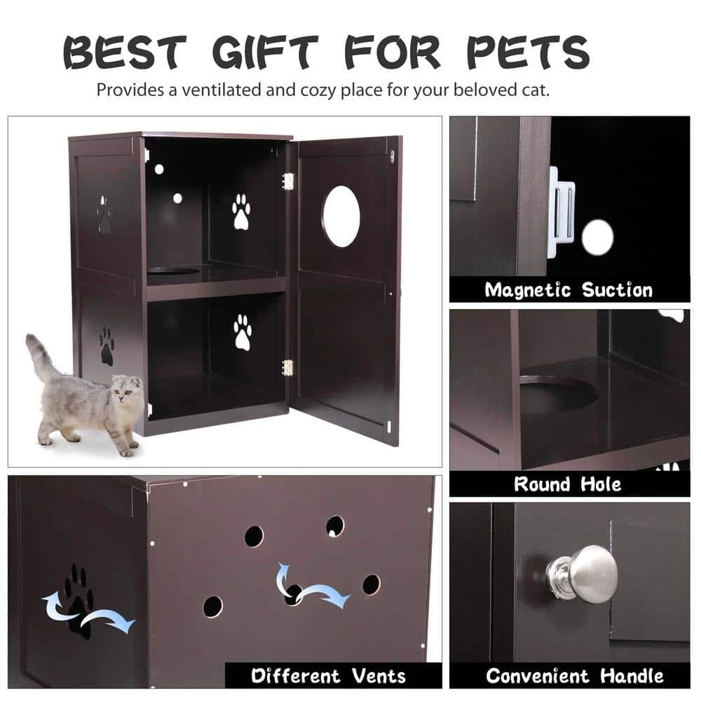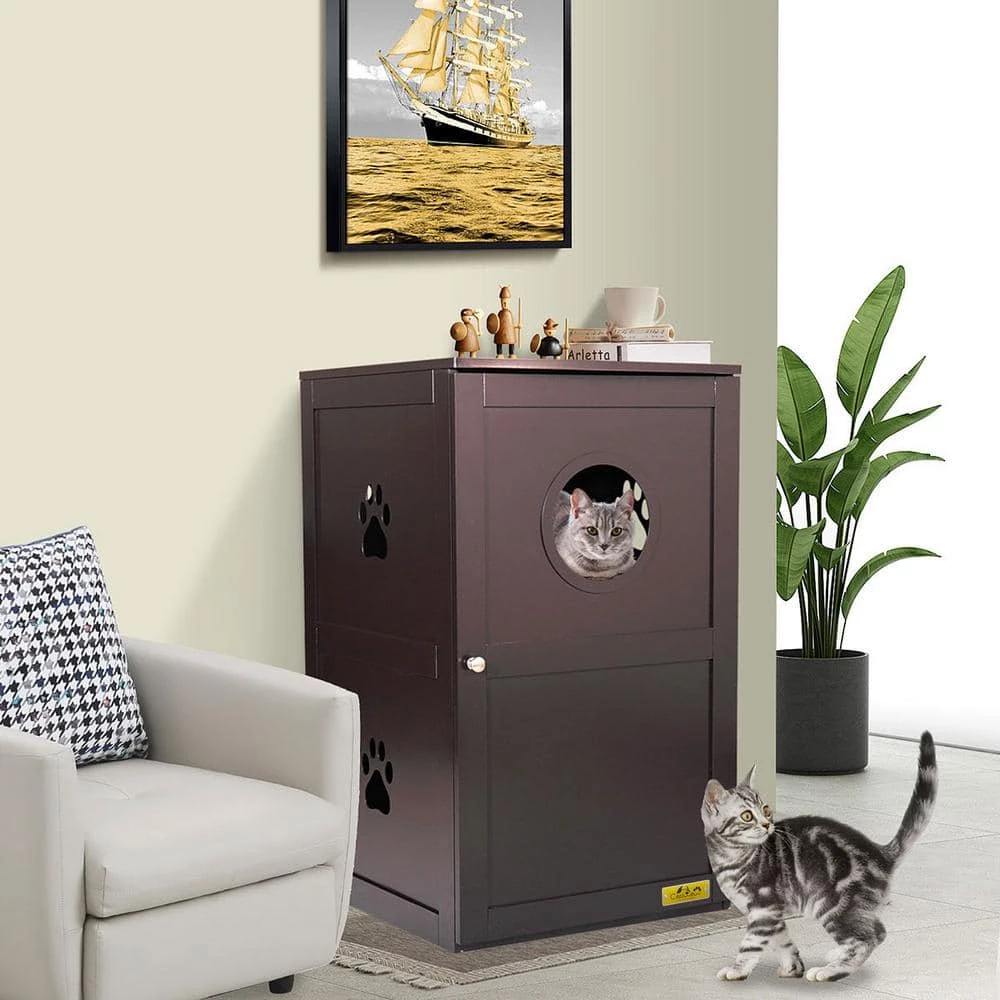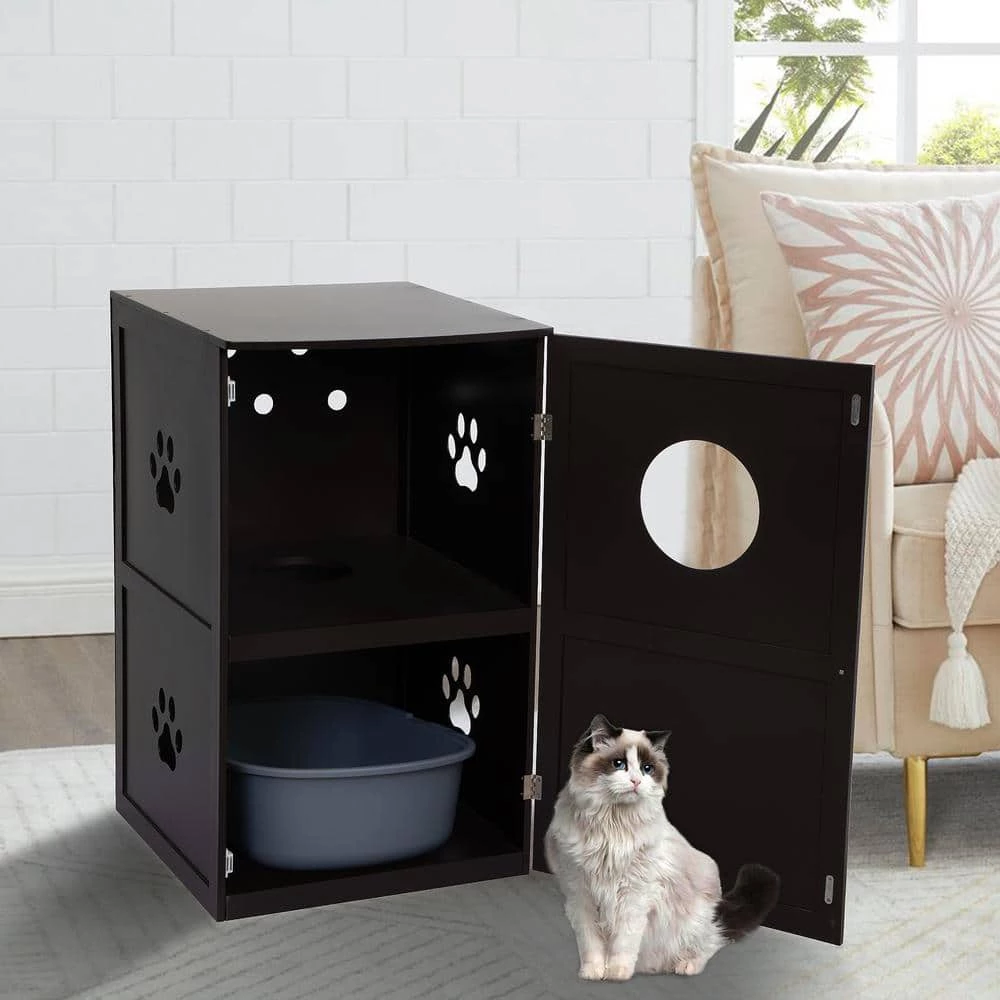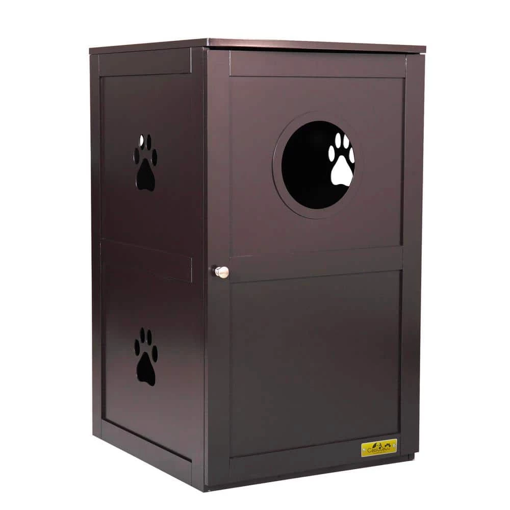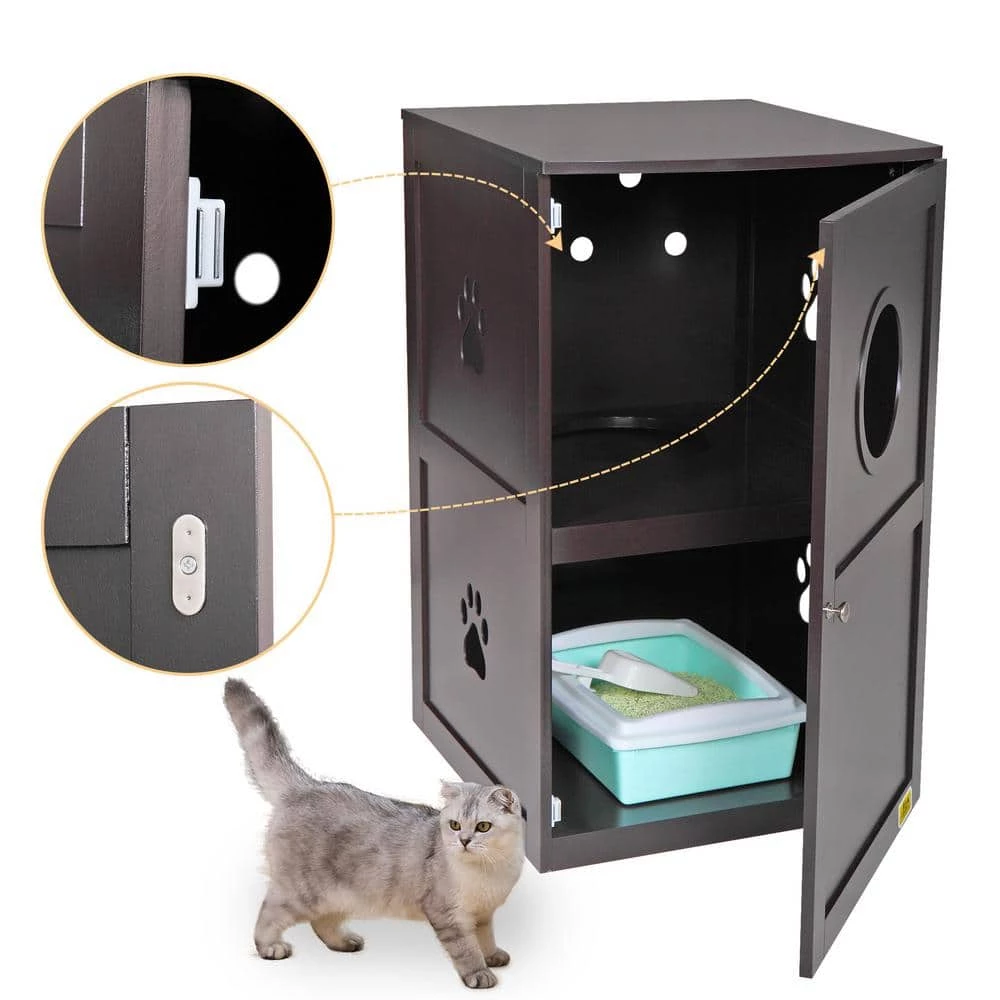 - Sturdy and durable construction: crafted from premium pet-friendly density board with an eco-friendly sleek white/brown lacquer finish, this cat washroom cabinet is sturdy and durable with little maintenance, coordinating with any home decor