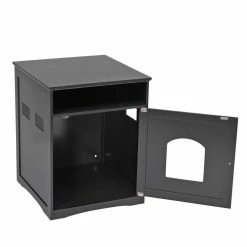 In addition to being a bedside table, our bedside table cat house also provides you with plenty of storage space for books, magazines and photo frames. Our indoor cat cage is made of environment-friendly MDF and spray paint, which is durable and elegant. It is also very wear-resistant and easy to clean. The structure is firm, and the cushion on the foot can not only increase the stability, but also prevent the floor from being scratched. There are 2 rectangular vents at the top of each side, which helps to keep the interior environment ventilated and comfortable. Push and pull the stainless steel handle to easily open and close the door.