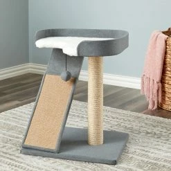 - Combination perch, bed, scratching post, play toy and scratch pad all in 1