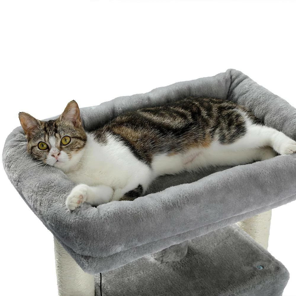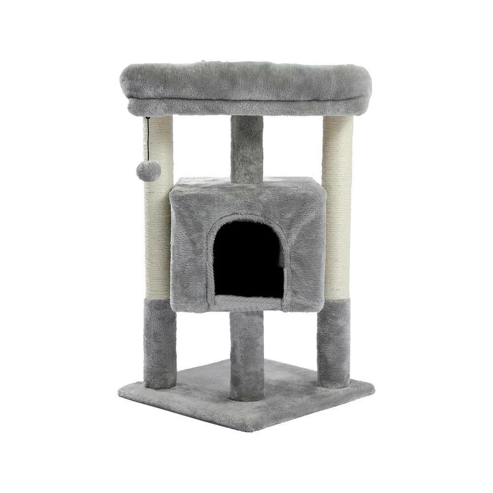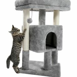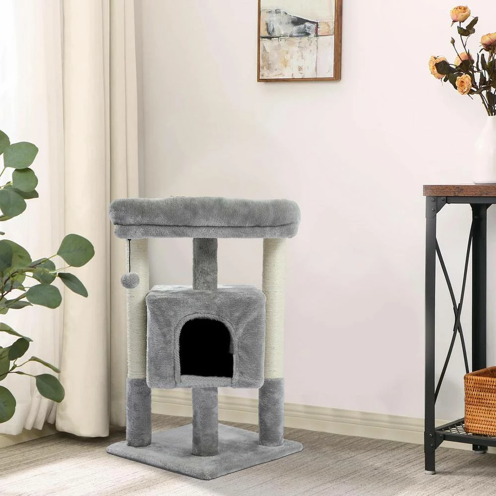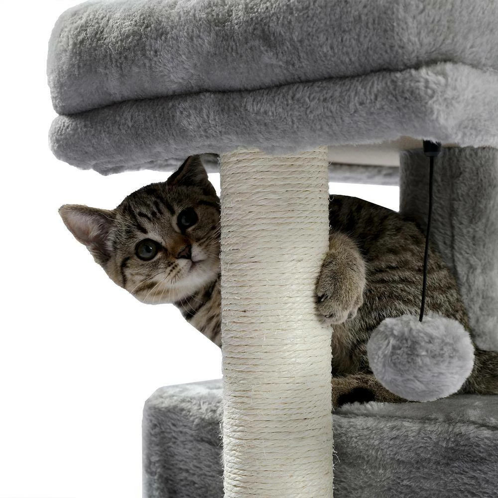 - Elegant cat tree stands 28.4 in. Tall comes with reinforced bottom base ensure its stability, it has the detachable ball and removable cover for easy replacement and easy care