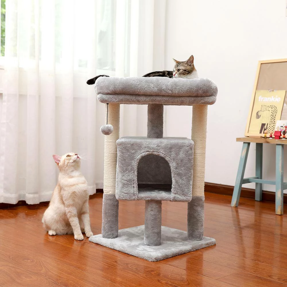 - Sturdy and safe: this elegant cat tree stands 28.4 in. tall comes with reinforced bottom base ensure its stability, it has the detachable ball and removable cover for easy replacement and easy care