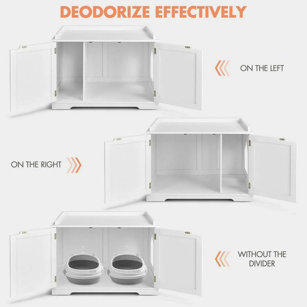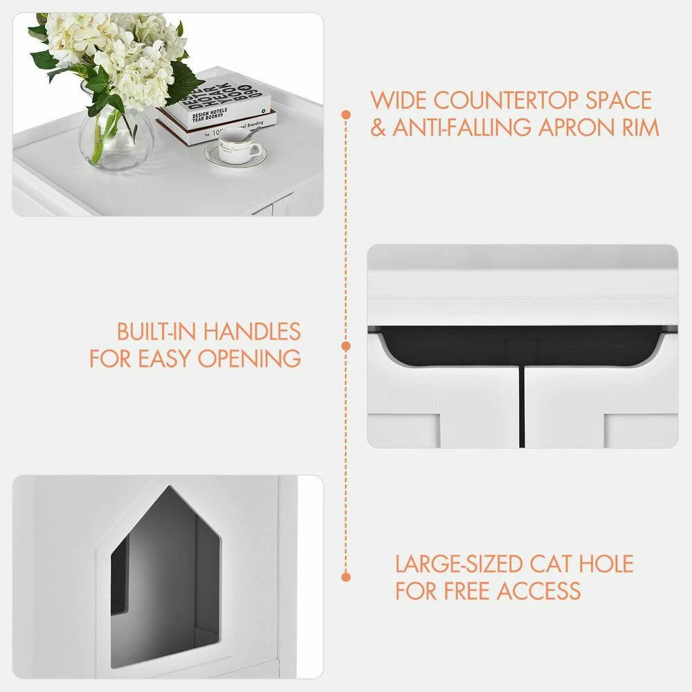 This cat house uses high-quality MDF structure and waterproof coating to make this cat house more durable and stronger. It can withstand a huge weight of up to 110 lbs., creating a safe space for cats to sit, sleep and play. In addition, we have set up a cat hole and a magnetic door to help you clean the cat litter and improve air circulation. More importantly, this cat house has large storage space and beautiful appearance, and can also be used as a cabinet or bedside table. The detachable inner wall is easy to clean. The instructions are included to make your installation process more convenient.