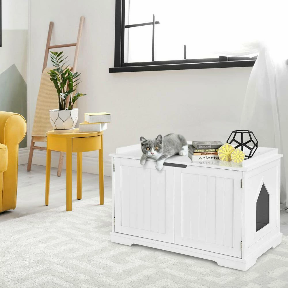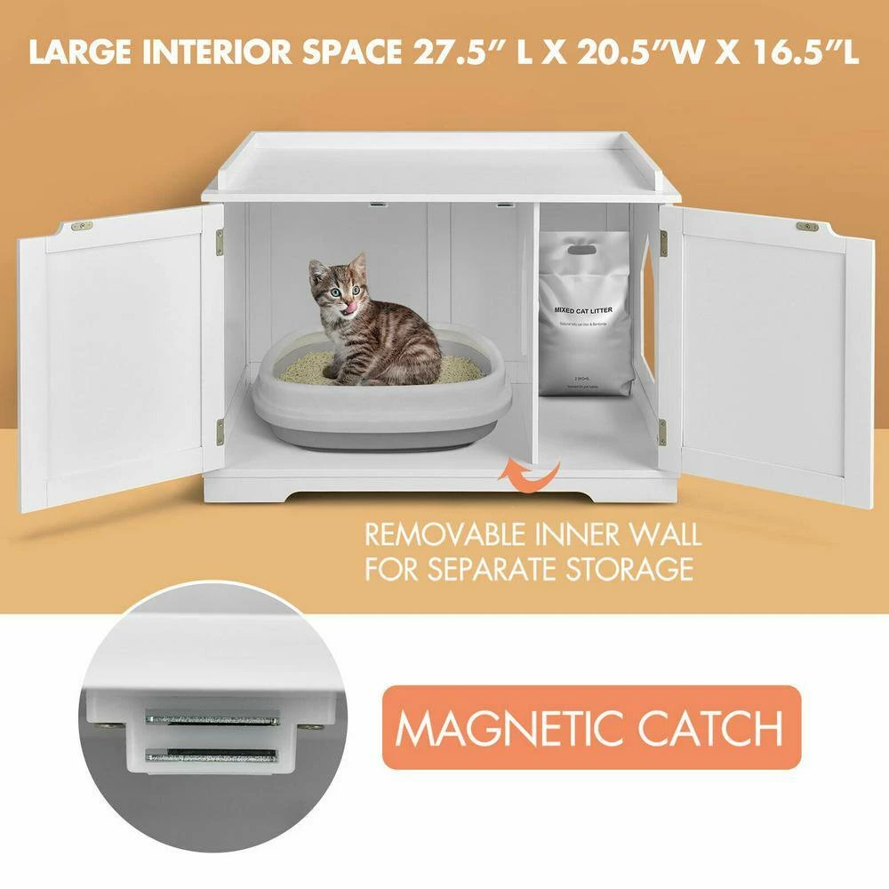 Using high-quality engineering board structure and waterproof coating, this garbage can is more durable and stronger. It can bear a huge weight of up to 110 lbs., creating a safe space for cats to sit down, sleep and play. In addition, we have set up a cat hole and a magnetic door to help you clean cat litter and improve air circulation. More importantly, this cat house has large storage space and beautiful appearance, and can also be used as a cabinet or bedside table.
