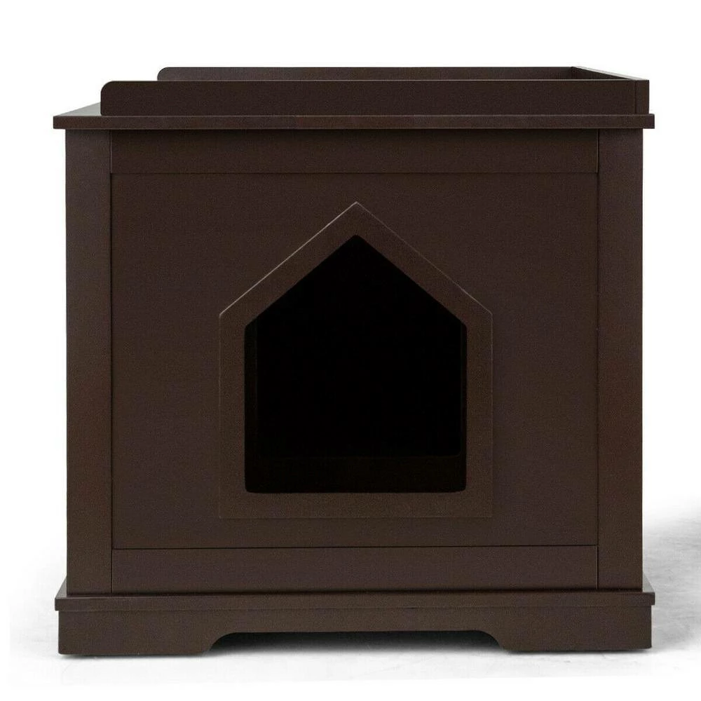 Featuring engineered board structure and water-proof paint to make this cat litter box more durable and strong. It can bear a weight of up to 110 lbs. and creating a safe space for cats to sit, sleep and play. In addition we set 1 cat hole and a magnetic door to help you clean the kitty litter and improve air ventilation.