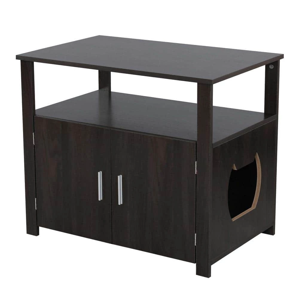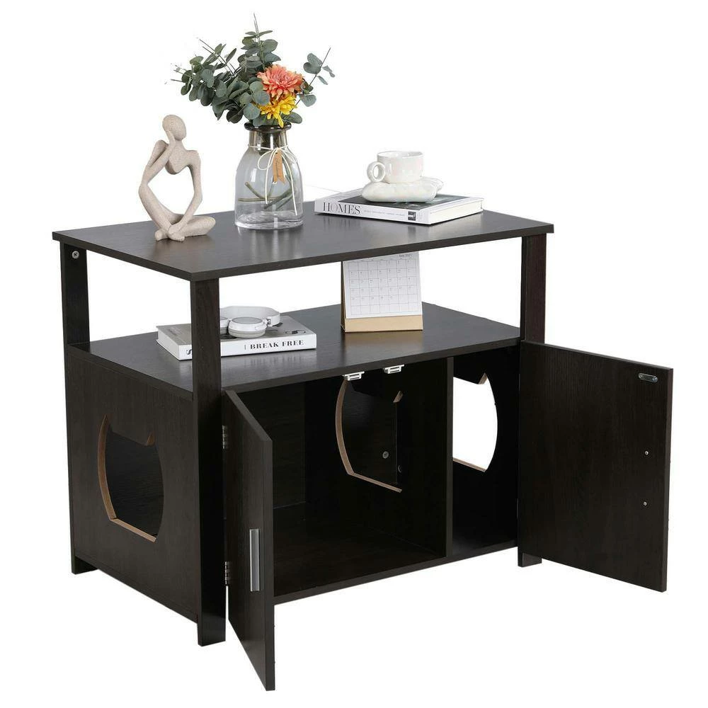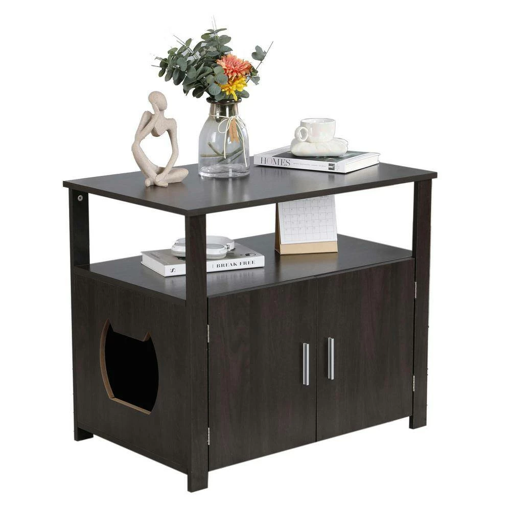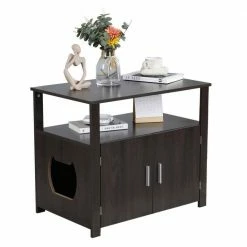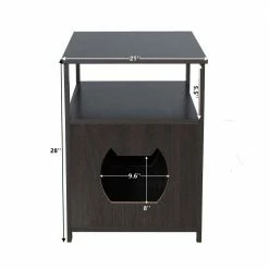 Classic cat furniture design covers and hides away a litter box while helping seal off smells and messes to keep your home sanitary and clean.The sturdy construction with solid wood, rustic brown finish and iron fastenings frame is stable enough as the storage bench Perfect for magazines, potted plants, lamps, coasters and drinking cups & glass. Easy to install,The assembly process for this cat house is very simple and can be done quickly by following the detailed steps in the instructions.You can put 2pcs buckle parts in suitable position, the another 2pcs are replacements.It has strong load-bearing capacity: can load 200LBS, strong load-bearing capacity!