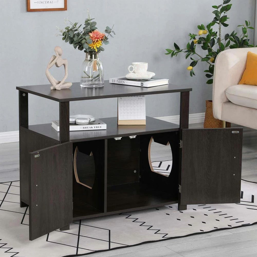 - The interior divider panel prevents litter from being kicked out and tracked onto the floor and can be reversible to suit the location of the entrance or remove to create a big space for the larger litter box.