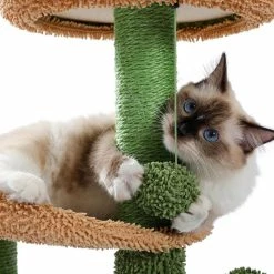 Unlike most of the cactus shaped products in the market. This is a multifunctional cactus cat tree with streamlined form design, your kittens could climb and leap on it freely. No matter they want to do some exercises on the fully sisal covered scratching post or have a break in the 3 rest spots, this multifunctional playhouse works perfectly as an ideal recreation paradise.
