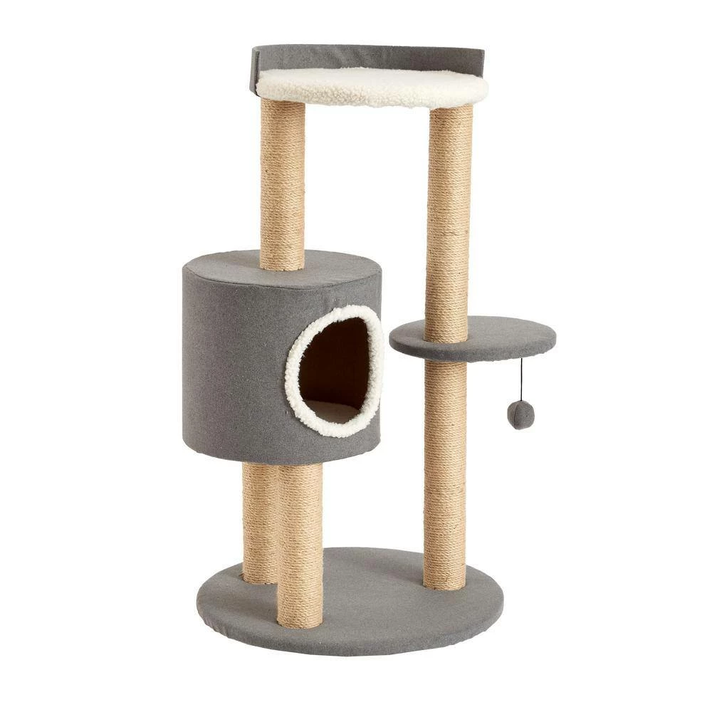 - 4 levels for rest or play with a dangling felt ball for added fun