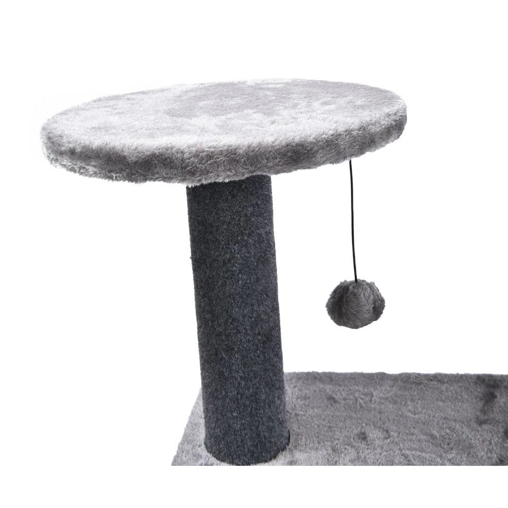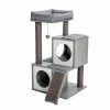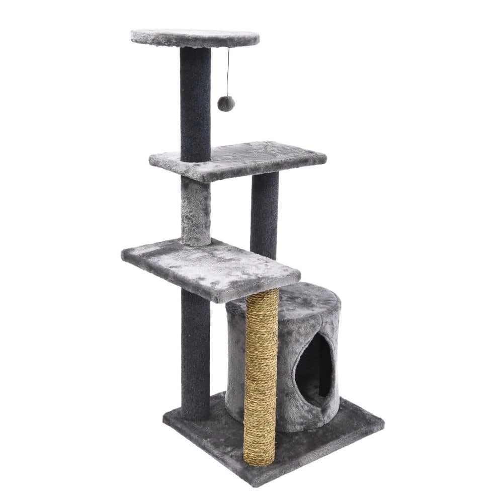 - Complete cat habitat this cat activity tree tower features a condo, 1 seagrass scratch post, 4 elevated perches and 1 plush hanging cat toy!