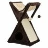 The dimension of this cat tree is 19.1 in. W x 50.8 in. H. If your cat loves staying high, he/she can lie at the top perch. Your pet also can stay in hammock to observe and play balls. If your cat is shy, he/she will love stay at the condo which provides privacy. More choices suits for more cats family.