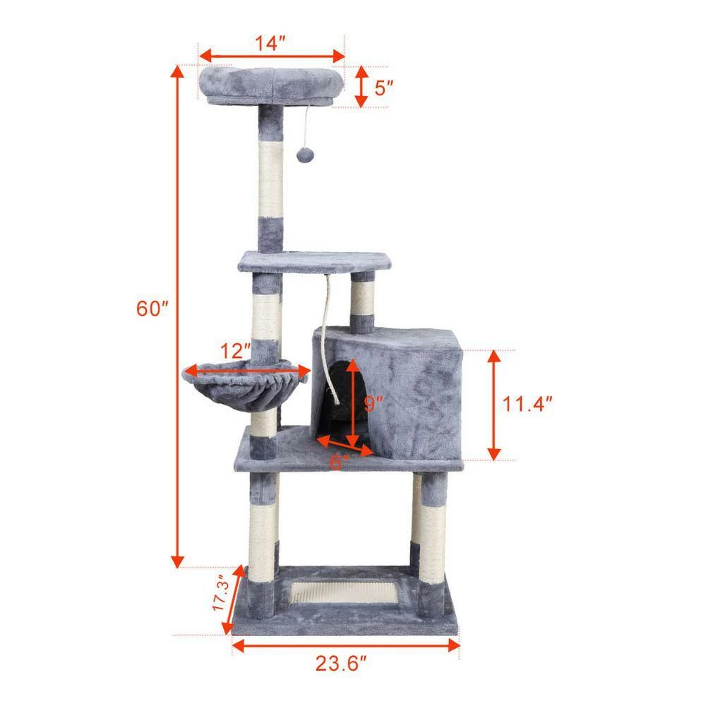 - Special for cats: scratching board, sisal posts, pentagonal house, cloth cat nest, round perch