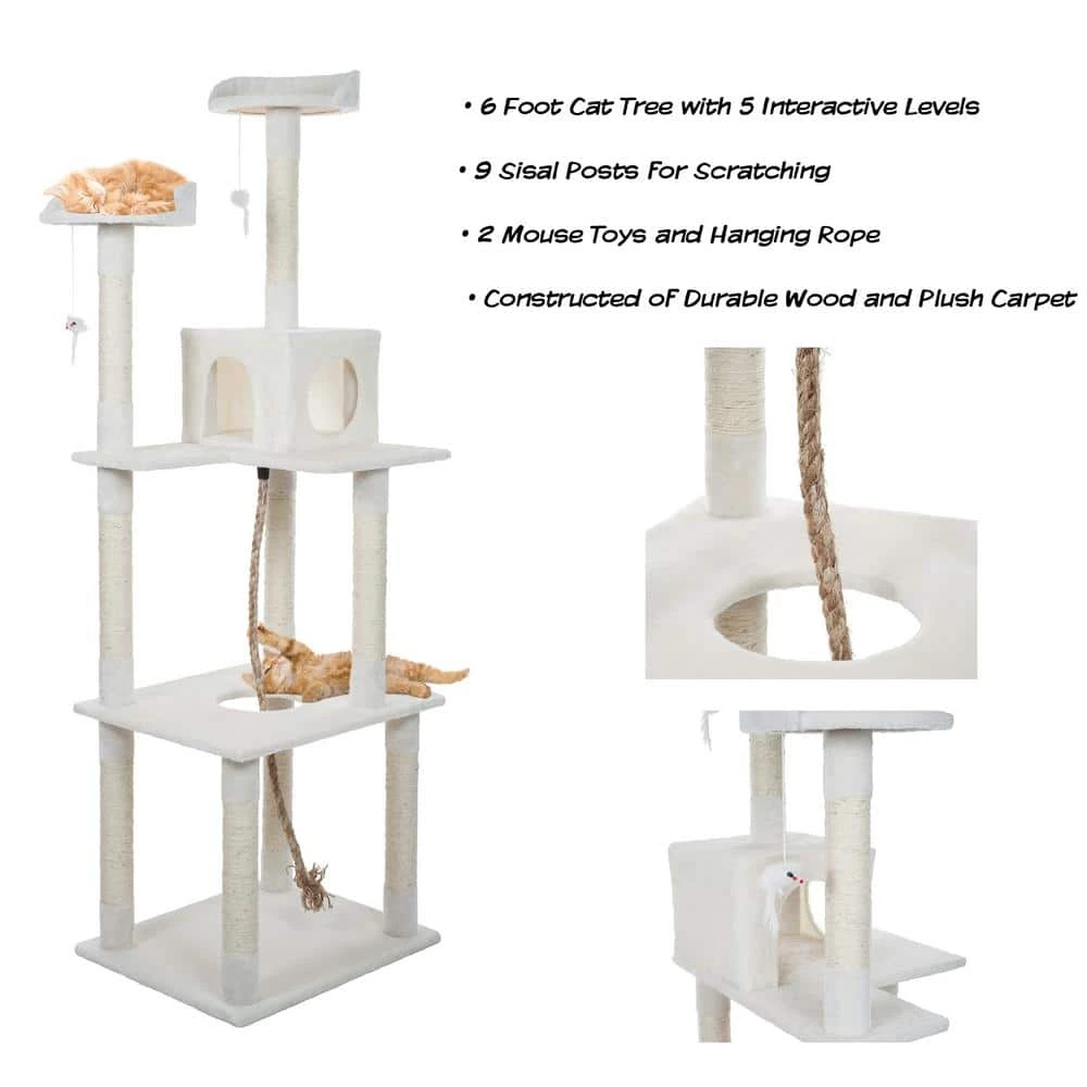 We Make Your Pet Happy! The Sleep and Play Cat Tree from PETMAKER will be your cat’s new favorite furniture! Featuring two hanging mouse toys, sisal rope scratching posts and three sleeping areas, your fur baby can observe their surroundings or catch a quick nap on one of two perches or get some peaceful, secluded rest in the enclosed loft. The sisal rope scratching posts keep your cat’s claws groomed and off of your furniture. Cats rely on vertical space for safety, comfort, and fun. Give them all of the above with the PETMAKER Sleep and Play Cat Tree.