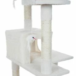 - Materials: Plush Carpet, Sisal Rope, Wooden Base