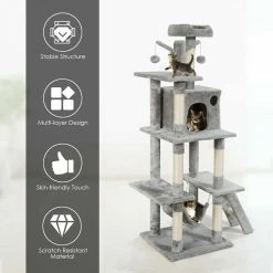 - Spacious apartments and platforms provide a comfortable resting place for cats