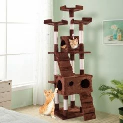 - Combination fun for cats: our multi-layer cat tree comes with 2 large condo houses, 3 relaxing perches with raised edging and 2 climbing ladders, which perfect meets your cat’s needs for jumping or napping