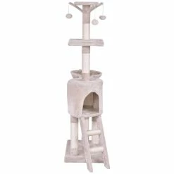 Your furry friend needs a place that is exclusively their own. This 56 in. cat tree is suitable and ideal for kittens or cats of all ages to play and enjoy themselves. Multi-use cat activity center with sisal rope scratching posts, perches, basket, condo hideaway, climbable ladder, and hanging mouse toys for endless entertainment. Cat scratchers benefit both pet and owner by providing an acceptable release for an animal’s instincts while saving carpets and household furniture from harm. They provide a comfortable haven for security and rest, especially for timid cats that may need extra reassurance of their safety.