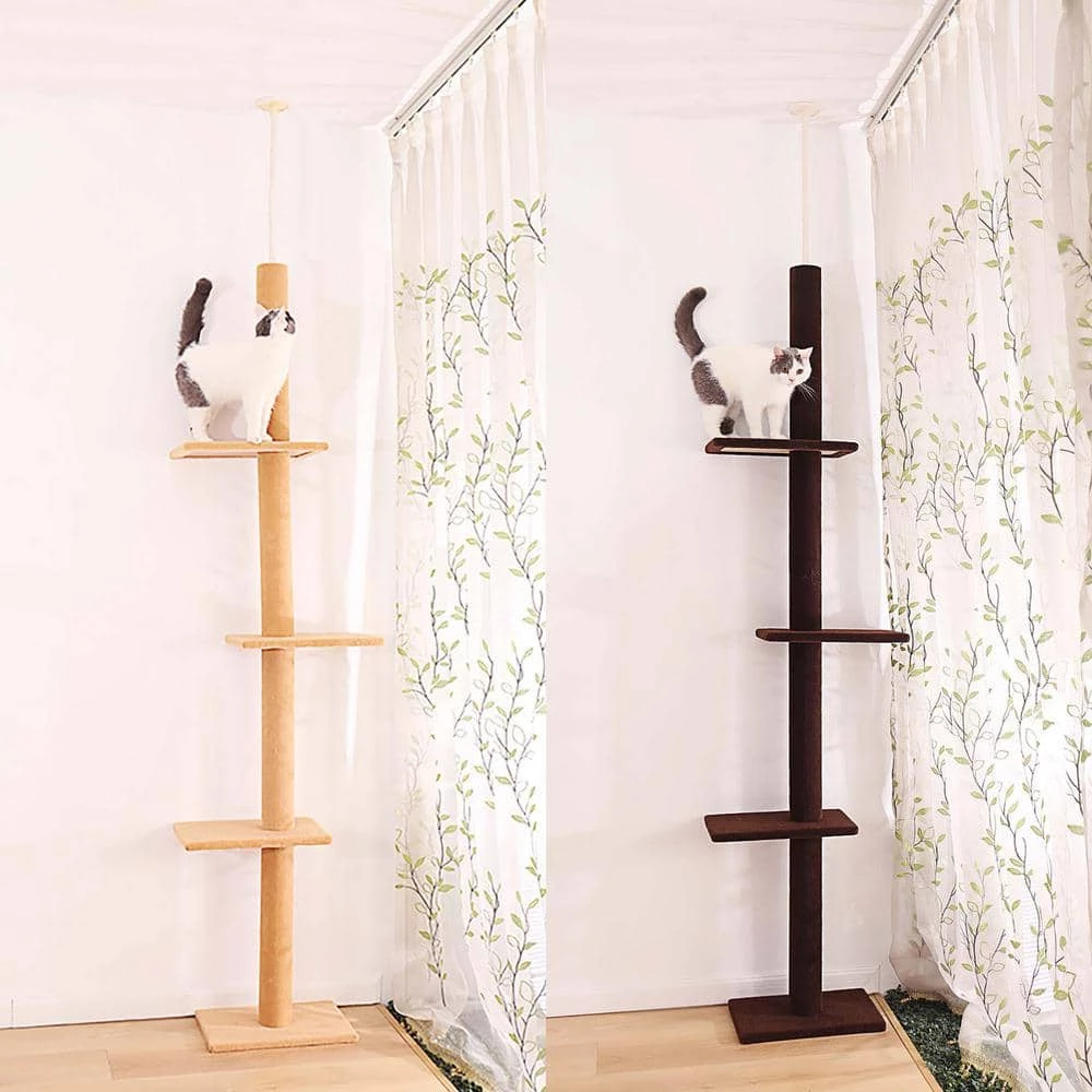 Recommend for small cats. This special pet play area Keeps your cats endlessly fun. With 4 platforms to sleep and bask on, this cat perch is the perfect solution for homes with more than 1 frisky feline. Cat scratchers benefit both pets and owners by providing someplace to relieve cats’ desire to claw and climb and save your carpets and household furniture from damage. Rest, play, exercise, your cats can spend all day on it, a comfortable unit for your furry friends.