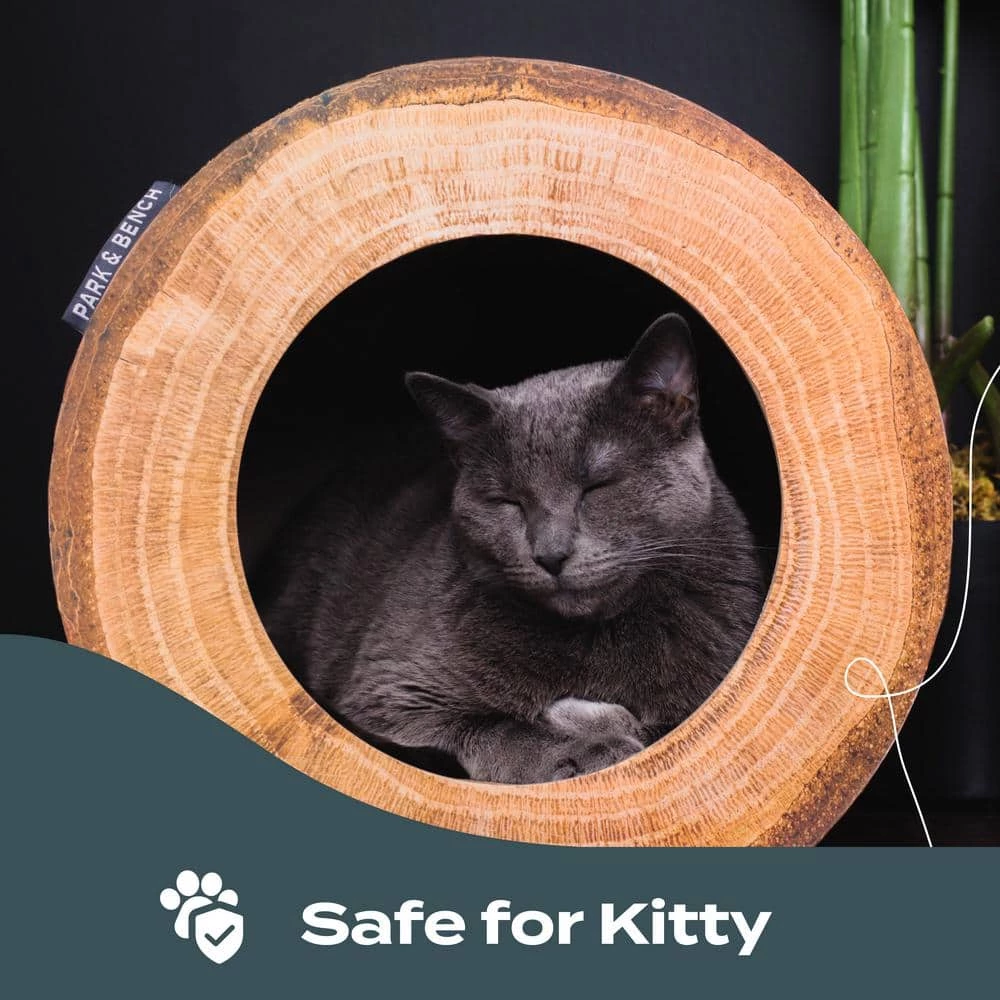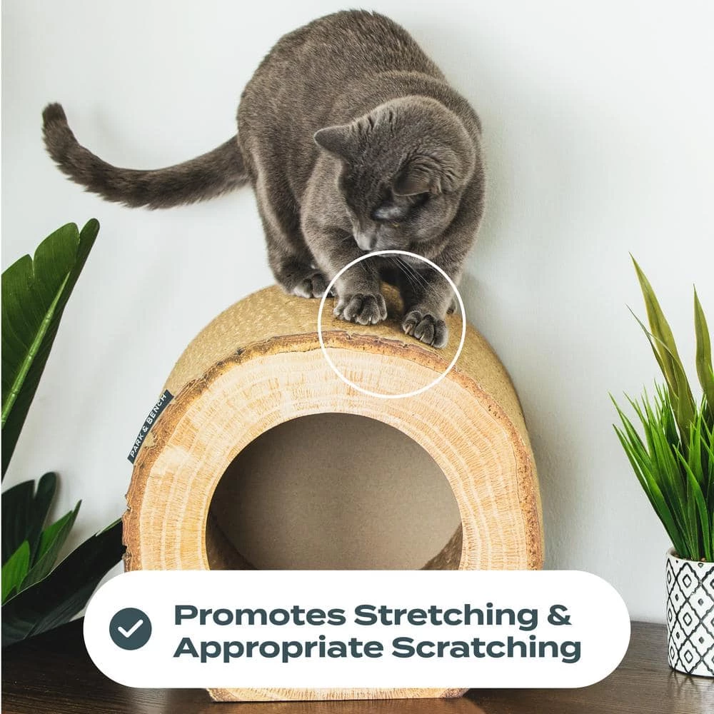 - Exercise and personal hygiene – the tree-trunk shaped scratcher not only entices kitty to sharpen its claws and stretch its muscles, it also invites your cats to zoom through its tunnel, which is a fun, high-energy way many cats play