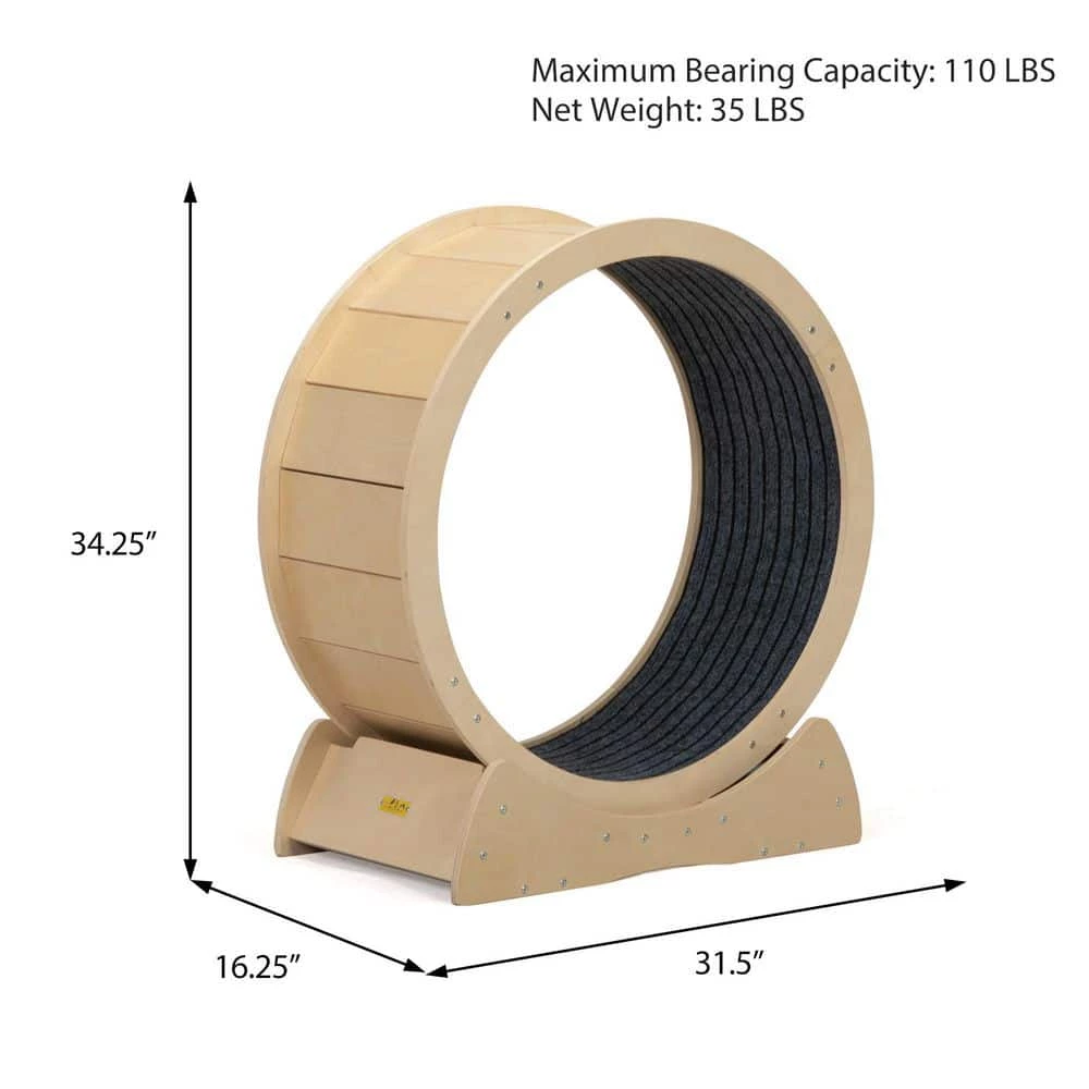 - Secure sturdy structure: made of 0.5 in. thick natural solid wood with pet-friendly waterproof varnish, this indoor cat running wheel is durable and holds up to 110 lbs. each edge is smoothed to ensure your feline safety use
