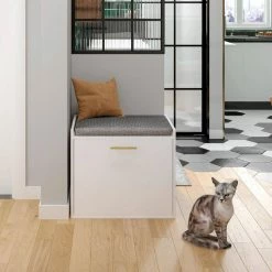 This is a cat house made of PB&MDF material. It can carry a load of 100 lbs. and is designed to be shared by both humans and pets. The sponge cushion provides rest and shoe change, which is very user-friendly. So please don’t hesitate to bring it home.