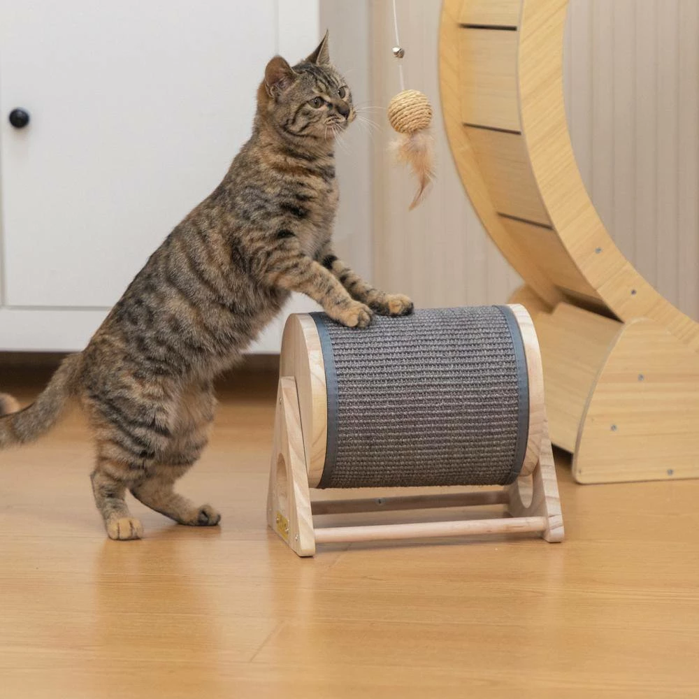It’s a blessing to have a cat without scratching your furniture, and the COZIWOW cat scratcher toy can make it possible. Made of solid wood, jute and sisal, this cat scratching wheel is durable for long-time service. The triangle board ensures a firm base with excellent stability. Cats can enjoy grinding their paws since it’s 360° spinning. The built-in bells also provide cats with enjoyment. In order to keep your kittens’ hygiene, there is an alternative scratching blanket. This scratching board toy will be a great distraction for your cat while protecting other furniture from being scratched.
