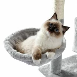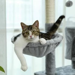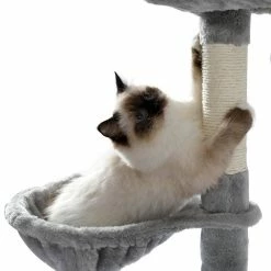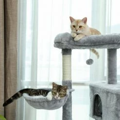 Perfect Cat tree for Multiple Adult Cat and Kittens The 56 in. Cat Tree has a super large top perch 2 condos and a hammock that provide enough spots for adult cats and small cat to rest and sleep. It is 56 in. tall and 6 levels that provide enough platforms for your little wild furry baby to climb jump and satisfy their daily activities. The natural sisal scratching poles provide them a workout to sharpen their nail and help them keep health while the dangling balls add the extra thrill and fun. It is easy to set up with step-step instruction. And we provide 1-Year Warranty for all parts except dangling balls. So you can buy and use it with confidence.