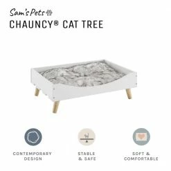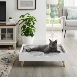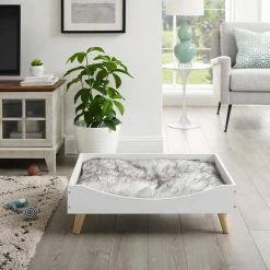 The Chauncy functions both as an inviting place for your pet to rest, as well as a striking addition to your home. Long polyester fur makes the cushion extremely soft and comfortable, and the solid wood legs ensure that it is safe and stable. Its neutral color palette and unique sleigh design will coordinate beautifully with any decor.