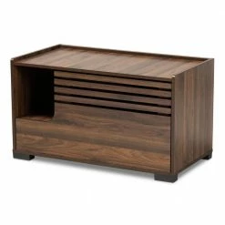 A stylish and versatile design makes the Claire cat house a wonderful addition to any space. Made in Malaysia, this convenient piece acts as a secluded place for a litter box and is fitted with a front entrance to provide your cat easy access. The Claire is also equipped with a storage compartment underneath the entrance, making it ideal for storing treats or pet supplies. Assembly is required and walnut brown finished wood gives the Claire a contemporary look that fits well in the modern household. Organize your cat’s life with the utility of the Claire cat house. A litter box is not included.