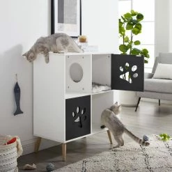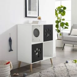The Convertible collection combines a modern and functional design so that you and your pet can be completely satisfied. A hole between cabinets allows your pet to move freely, and the dynamic two-tier design is suitable for multiple cats to enjoy. The plush polyester cushion provides the perfect spot to curl up and rest. This end table is crafted from high-quality materials and the added surface area allows for the storage of your personal items.