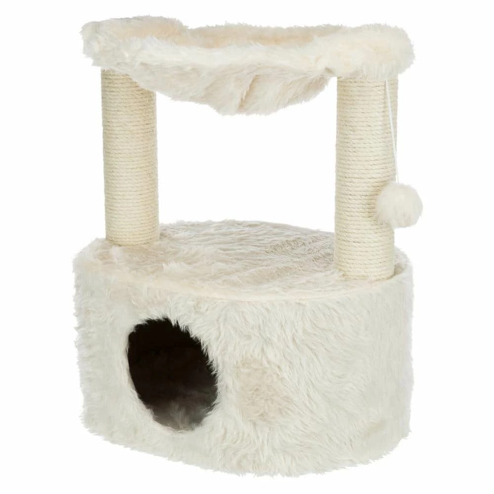 The TRIXIE Baza Grande Cat Tree will provide endless opportunities for cats to play and scratch or just relax. Felines can sharpen their claws on the scratching posts instead of on your furniture or carpet, giving them a healthy outlet for their scratching instincts. All posts are covered in durable sisal. If a nap or place to survey their kingdom is in order, they can curl up in the cozy hammock. It’s covered with long-haired plush material and has a metal rim for added support, making it the perfect retreat. Feeling a little spunky? We’ve also included a dangling pom-pom toy sure to peak your playful cat’s interests. The subtle earth tones of the sisal and plush fabric also make this piece of cat furniture easy to integrate into your home decor. Dimensions (Inch): 20 x 15 x 24; posts 3.5. Weight: 17 lbs.