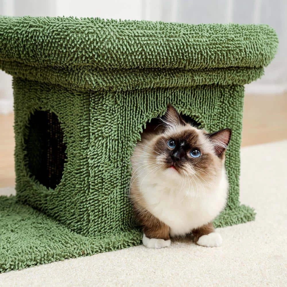 The cat play center is covered in soft fabric and will look great in any home. Full of fairy tale sense easily creates a romantic atmosphere. Perfect choice for your cute cat.