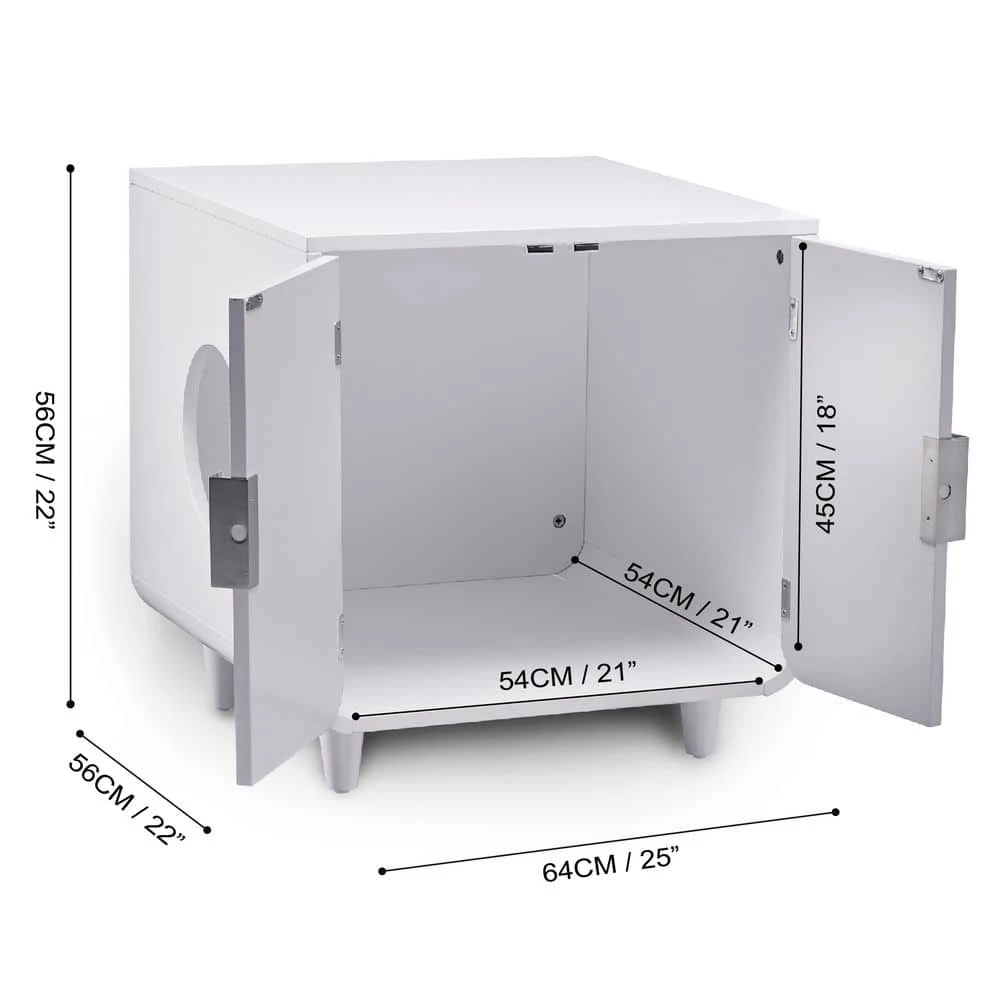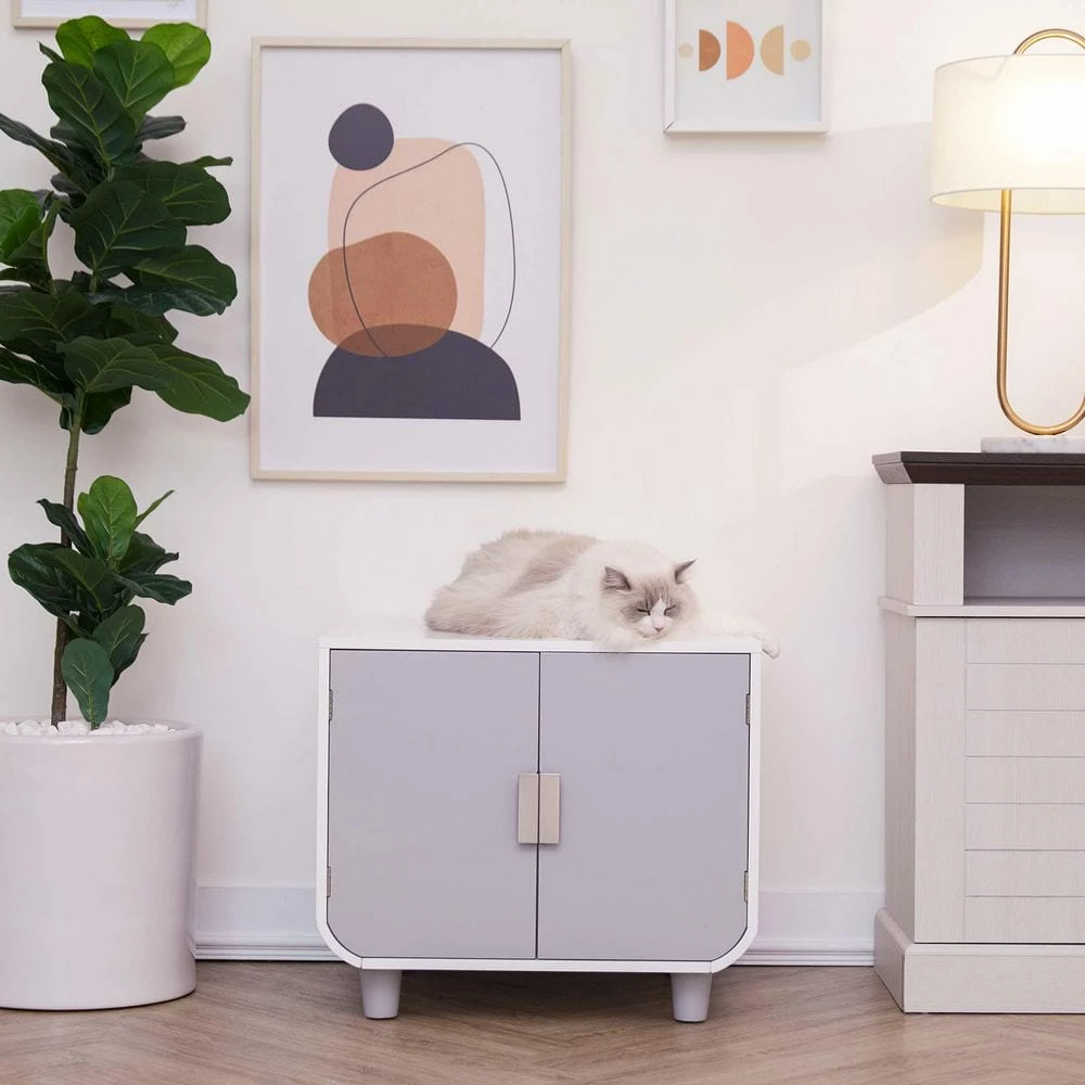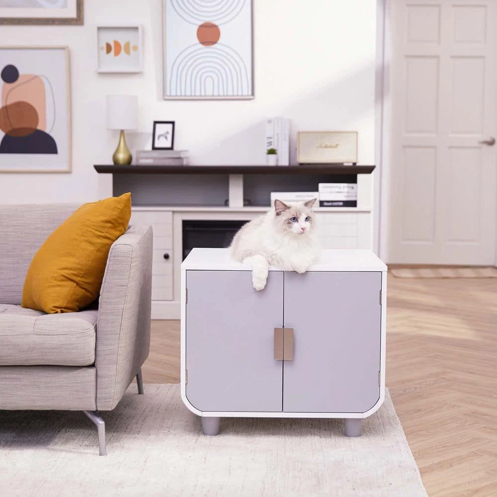 - MODERN LITTER BOX: Features a classic mid-century design with a white finish and gray accents for a modern addition to any space