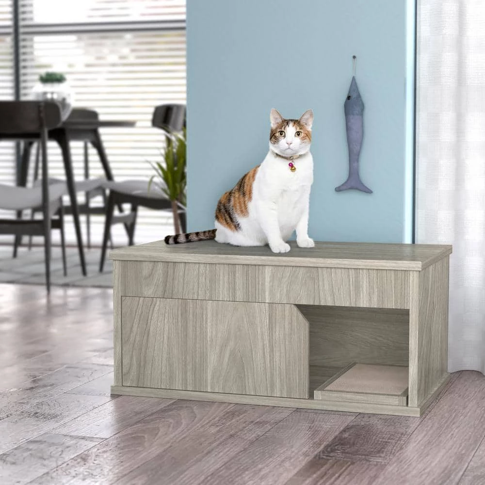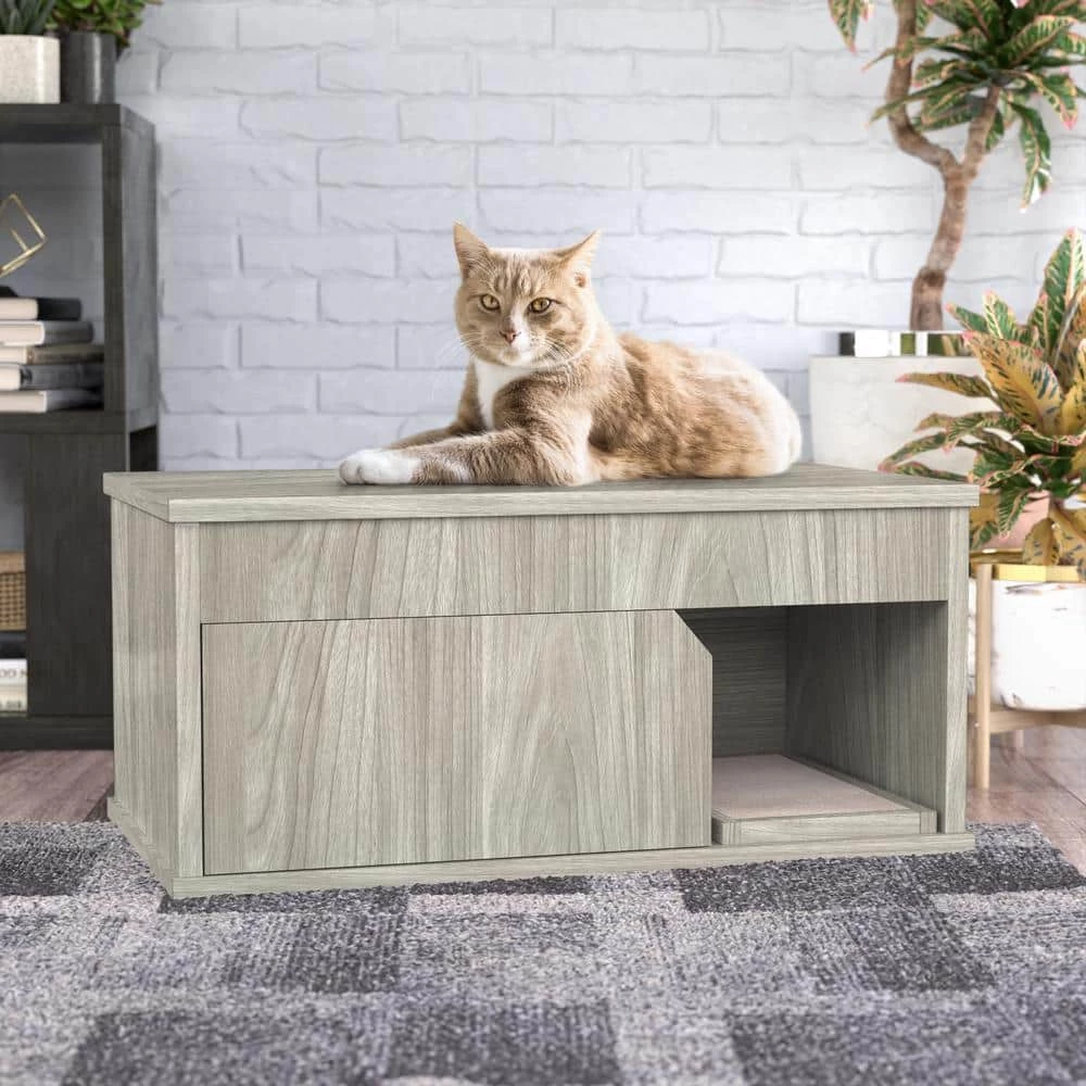 When you see how elegant our newly designed 1-Door Cat Litter Box looks, you wont believe it is made from our patented eco friendly zBoard recycled paperboard and comes together without any tools thanks to 3M Adhesive Strips. Weve conveniently included a Premium Cat Scratcher at the entrance of the litter box, offering your cat not only a private scratching spot but trapping loose litter specks at the scene of the crime, Featuring a generous upper surface, you will have plenty of space to decorate the unit to match the personality of your space.