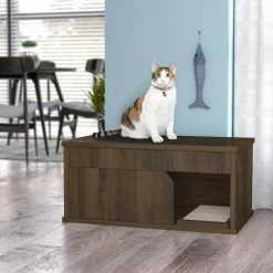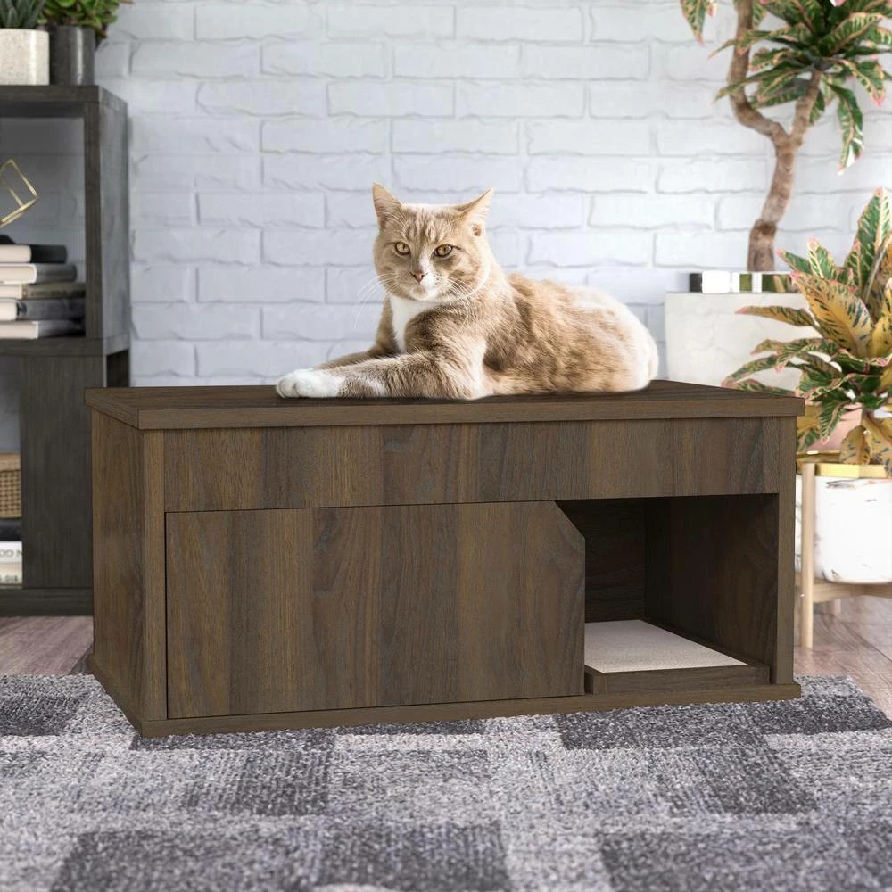 Eco zBoard 36.6 in. W x 16.9 in. H Royal Walnut Cat Litter Box Enclosure with 1-Door by Way Basics