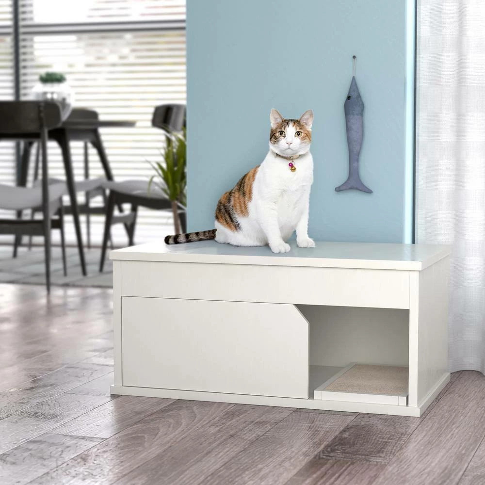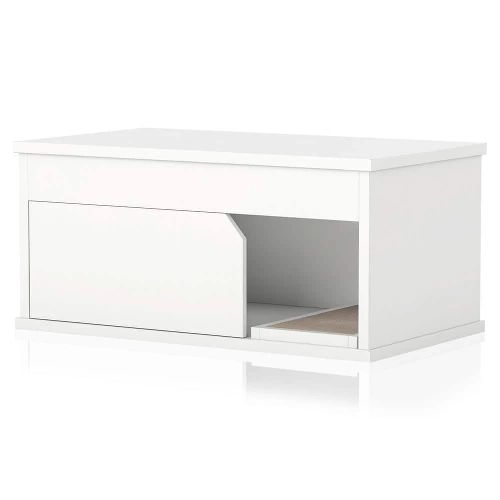 When you see how elegant our newly designed 1-Door Cat Litter Box looks, you wont believe it is made from our patented eco friendly zBoard recycled paperboard and comes together without any tools thanks to 3M Adhesive Strips. Weve conveniently included a Premium Cat Scratcher at the entrance of the litter box, offering your cat not only a private scratching spot but trapping loose litter specks at the scene of the crime, Featuring a generous upper surface, you will have plenty of space to decorate the unit to match the personality of your space.