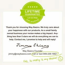 - Lifetime guarantee, happiness with product and service promised by our CEO and founder
