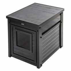- Multi-purpose end table and litter box cover. Conveniently store plants, lamps and other household treasures on top. A real space saver; perfect for small spaces