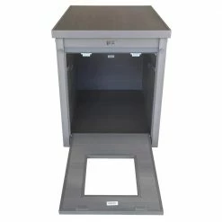 Hide your litter box, will ya?! The ECOFLEX Litter Loo litter box enclosure will keep your cat’s unsightly litter box hidden away. Flip down front access for easy clean up. Elevate your living space with this space saving solution to cat litter boxes. Doubles as an end table. ECOFLEX is a proprietary formula that incorporates reclaimed wood and plastic into the material that allows the product to be eco-friendly and a great value as it will outlast most other products. ECOFLEX is 100% non toxic and does not absorb moisture. There is nothing in ECOFLEX that could harm your pets. Easy no tools assembly. Litter Box not included.